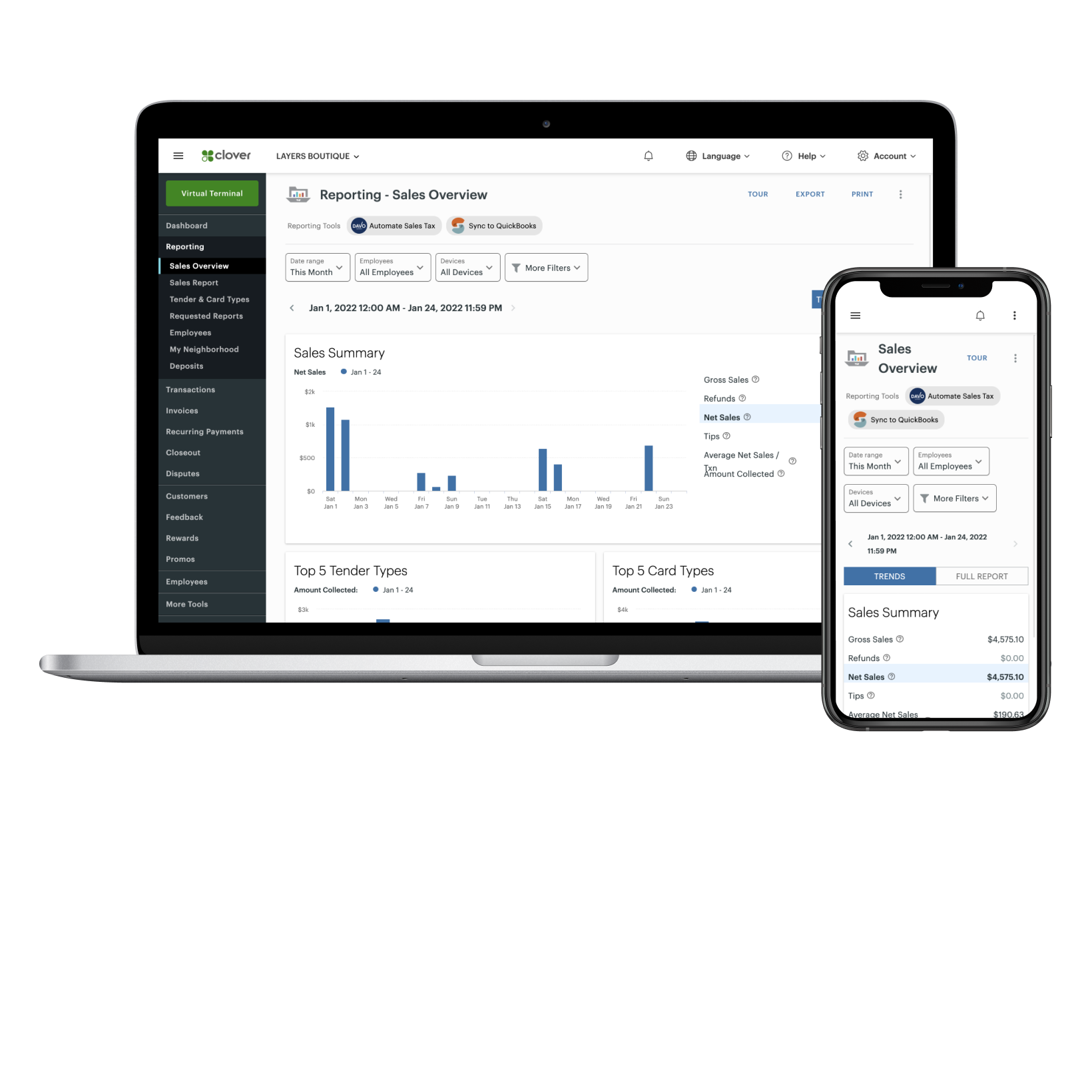 Do it all with a paired 14″ touchscreen terminal and 8″ customer-facing display